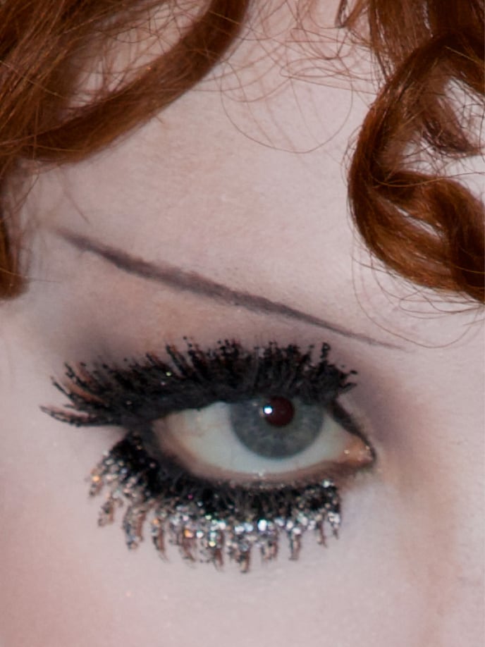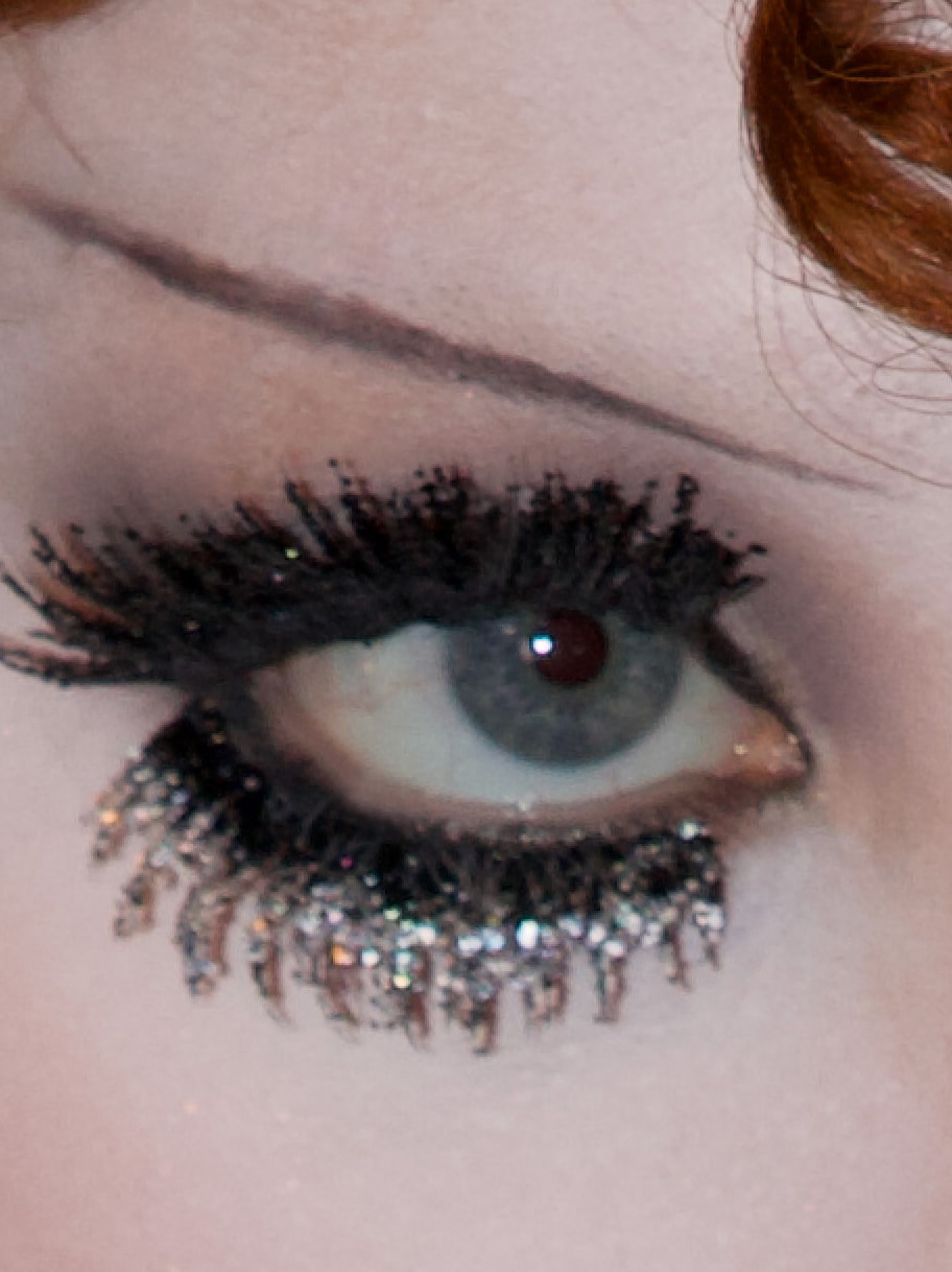 9. Aplica una capa de volumen y longitud infinitos con M·A·CStack Mascara. A continuación, usa M·A·C Lash / 76 Supermodel Lash y M·A·C Lash / 80 Romantic Lash en las líneas superior e inferior de las pestañas y Dazzleshadow Liquid Eye Shadow para aplicar un poco de glitter en las puntas.