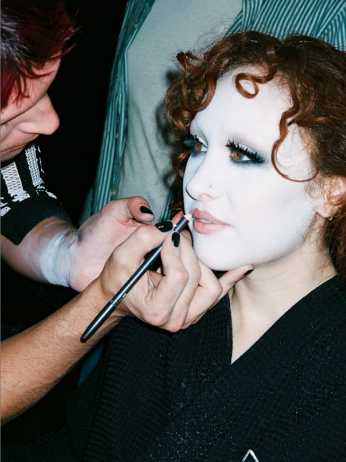 El maquillador Andrew Dahling colabora con Chappell para trabajar en las inspiraciones, las referencias televisivas drag y los bocetos que darán vida a los looks más atrevidos de la cantante. “Se trata de desarrollar estos personajes a través del arte”, dice Chappell. La cantante pasa de Kayleigh a Chappell a través de looks divertidos y experimentales, aprovechando el poder del maquillaje como herramienta para expresarse sin complejos desde su adolescencia. “En el Medio Oeste, en mi infancia, siempre me decían que me controlara un poco, pero esa energía es lo que me ha hecho ser quien soy. Quiero que la gente sienta que puede ocupar todo el espacio que quiera y expresarse de manera genuina, que ese “demasiado” es lo más mágico que tienes, y eso es algo que ha formado parte del ADN de M·A·C desde el principio”.