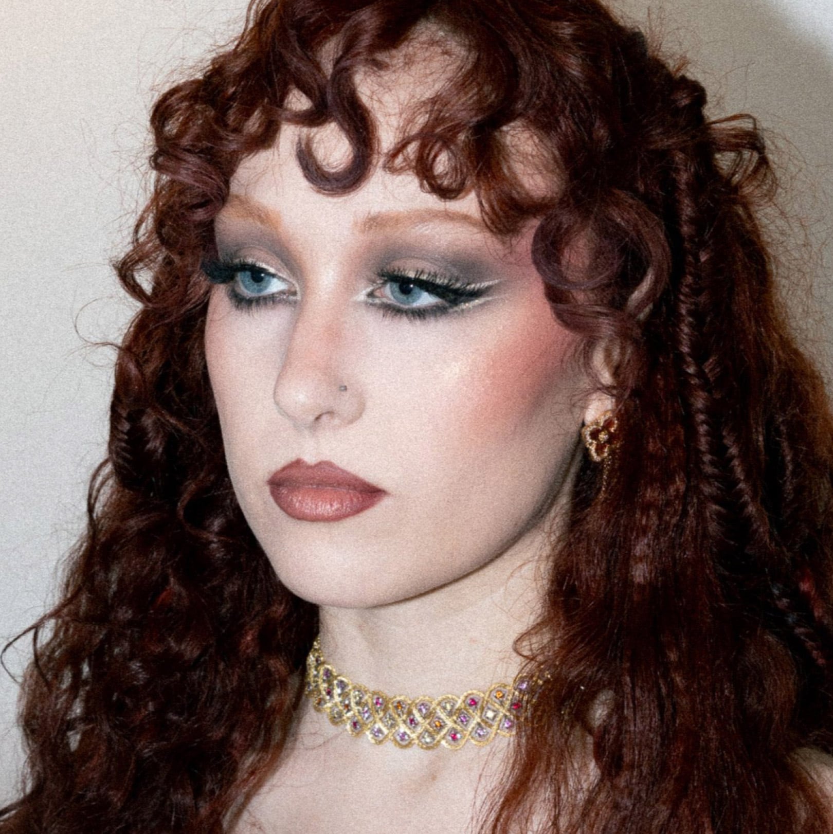 8. Aplica una capa de Dazzlelips Crayon en Chandelier para conseguir un acabado metalizado. A continuación, delinea y define con Lip Pencil en Plum y Auburn.